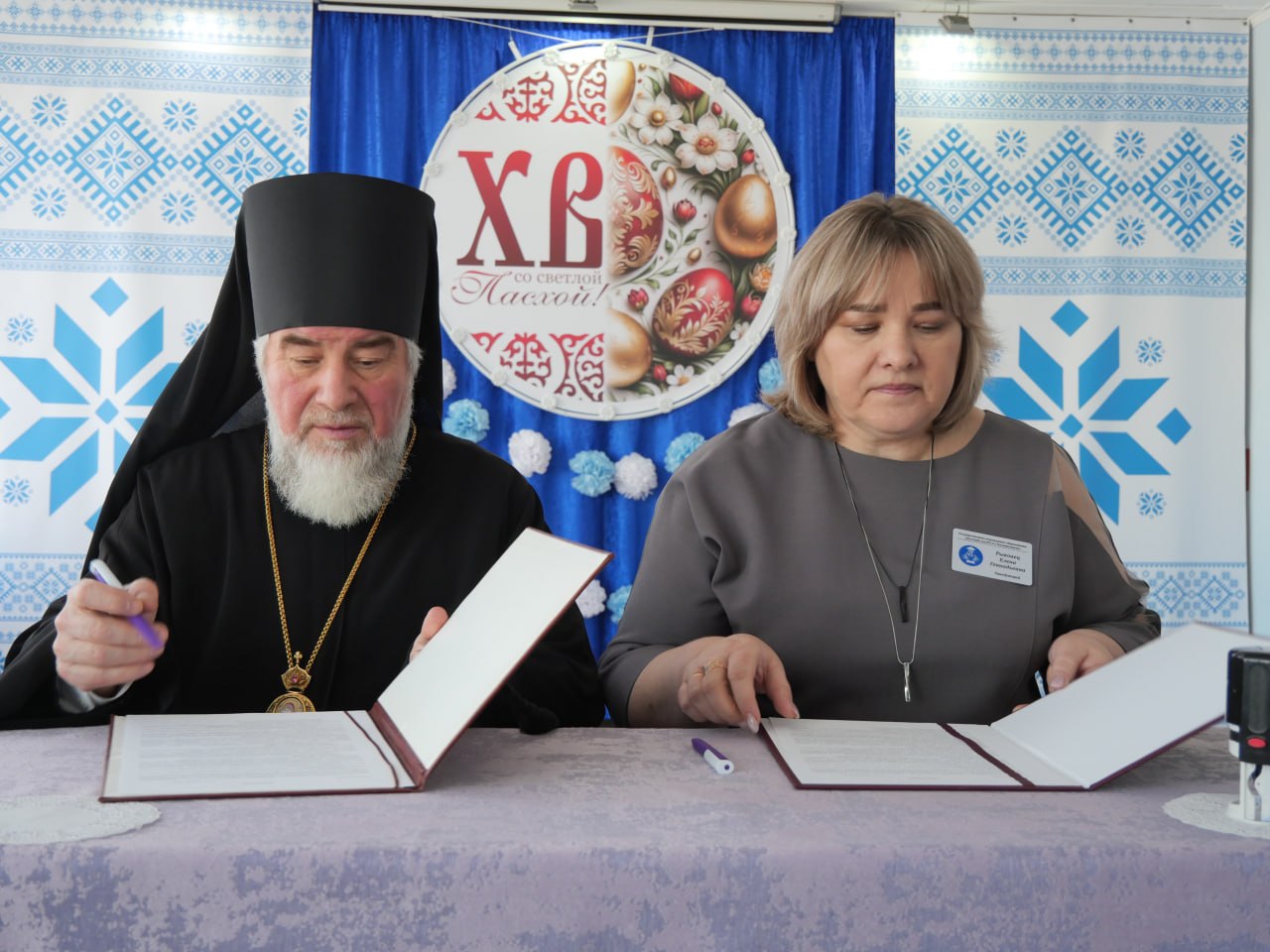 Затем, в торжественной обстановке был подписан договор о сотрудничестве между Туровской епархией и ГУО "Детский сад №15 г. Калинковичи".