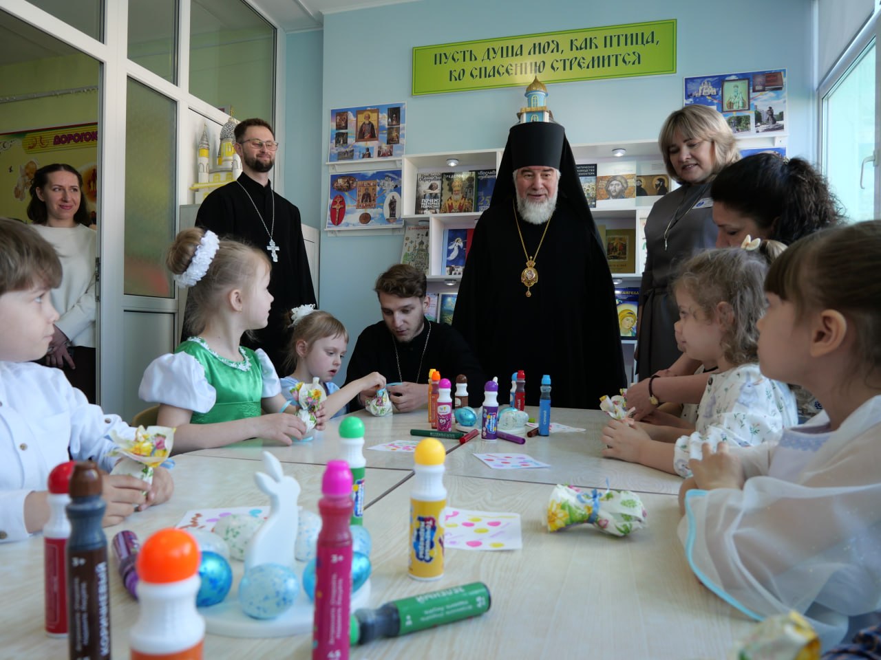 Для почетных гостей воспитанники подготовили праздничный пасхальный концерт. В свою очередь владыка Леонид поздравил ребят и коллектив с Пасхой Христовой и каждому ребенку пасхальные сладости.