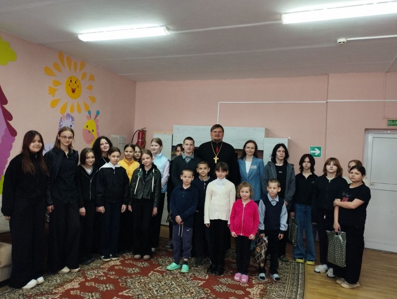 В дни пасхальных праздников священнослужитель совместно с учащимися гимназии посетил Калинковичский социально‑педагогический центр